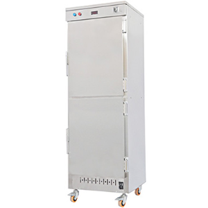 دستگاه گرمکن غذا 50 و 100 و 200 نفره ، دارای 10 طبقه و دارای دو المنت 1500 وات فن دار و یک ترموستات قابل تنظیم می باشد که بهترین دمای غذا گرم کردن ، دمای 70 درجه سانتیگراد می باشد که یک ساعت و نیم قبل از صرف غذا دستگاه روشن گردد. گرمکن غذا بزرگ 100 و 200 نفره ، دوجداره و دارای عایق حرارتی پشم سنگ می باشد که مانع از هدر رفتن گرما و پخش شدن آن در محیط می گردد.